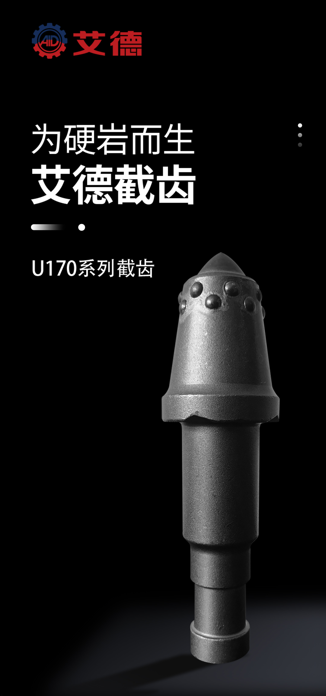 产品特性: U170采煤机截齿适用于大功率采煤机;有效对抗硬岩及腐蚀性工作环境;宽大法兰肩保护齿套、齿座;卡簧提供可靠加持力;硬质合金选配范围22mm~35mm。
