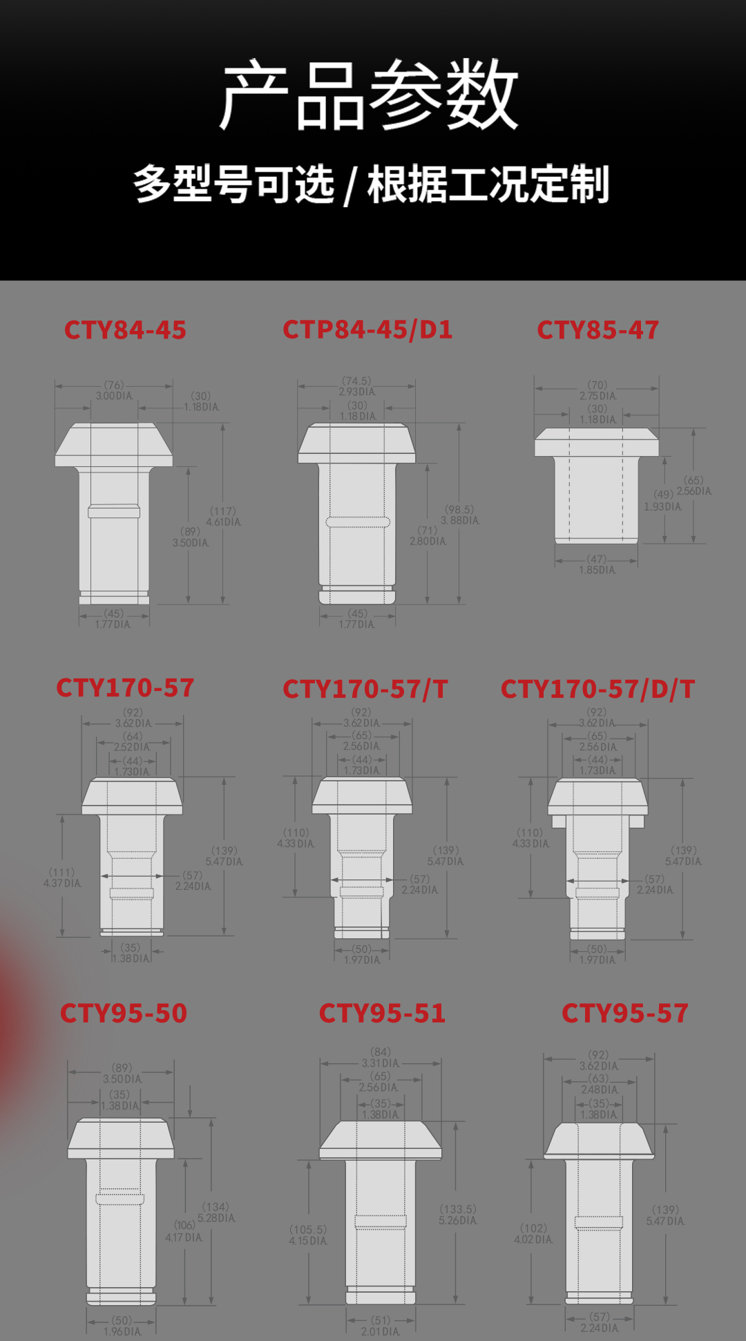 产品规格:CT95-50,CT95-57等,可特殊定制