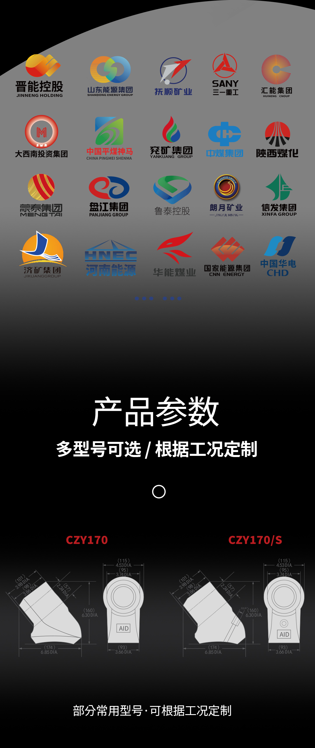 产品特性: CZ170系列截齿齿座分为优质和普通两种材质,前者属于超高强度钢,相较于后者具有高强度、高韧性以及良好的淬透性。