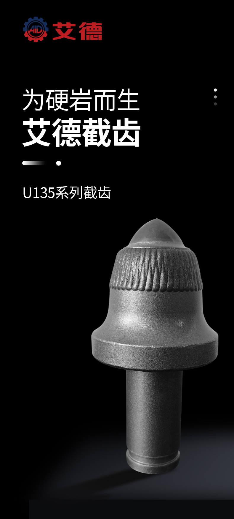 产品特性: U135掘进机截齿属于硬岩级截齿,适合重型~超重型工况;标准主体设计、宽大法兰肩提供最大齿座保护;适用于腐蚀性高的岩石状况和断层级全岩巷道;隧道用截齿、抗冲击强、渗透性好;硬质合金选配范围19mm~35mm。